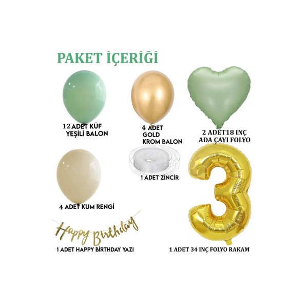 Küf Yeşili-Krom Gold- Deniz Kumu ve Adaçayı Kalp Folyo Balon Set Parti konsepti arayanlar için en özel setler PartiMarket'de. Çok Özel temalı parti yapmak isteyenler bu seti çok beğenecek. Paket İçeriği: Görselde yer alan Gold 34" Inc 76 cm rakam folyo balon. (1 adet)