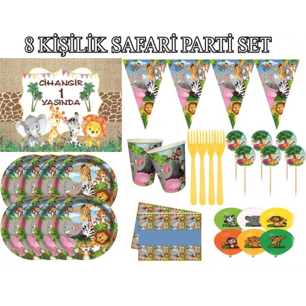 KİŞİYE ÖZEL SAFARİ DOĞUM GÜNÜ PARTİ MALZEMELERİ SET 8 KİŞİLİK
