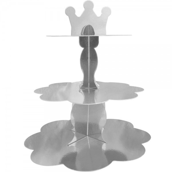 Metalik Gümüş Puantiyeli Cupcake Standı