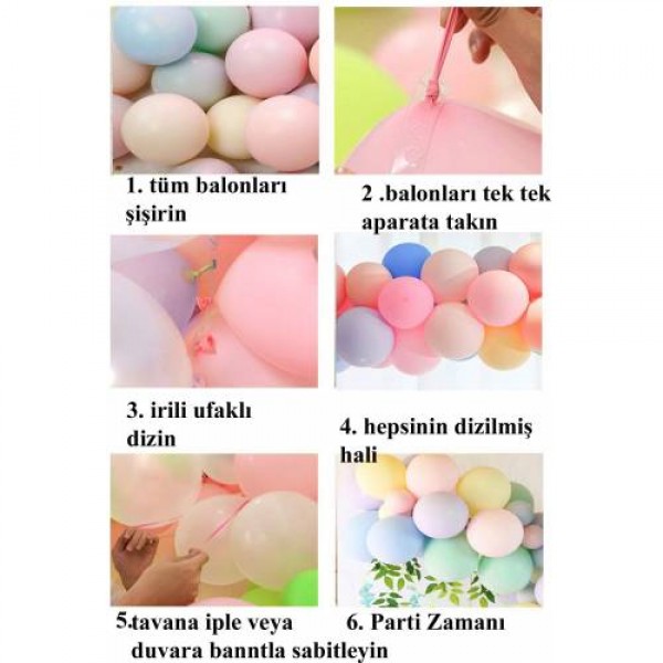 Balon Standı 11 Li Balon Demeti Makaron Renkler